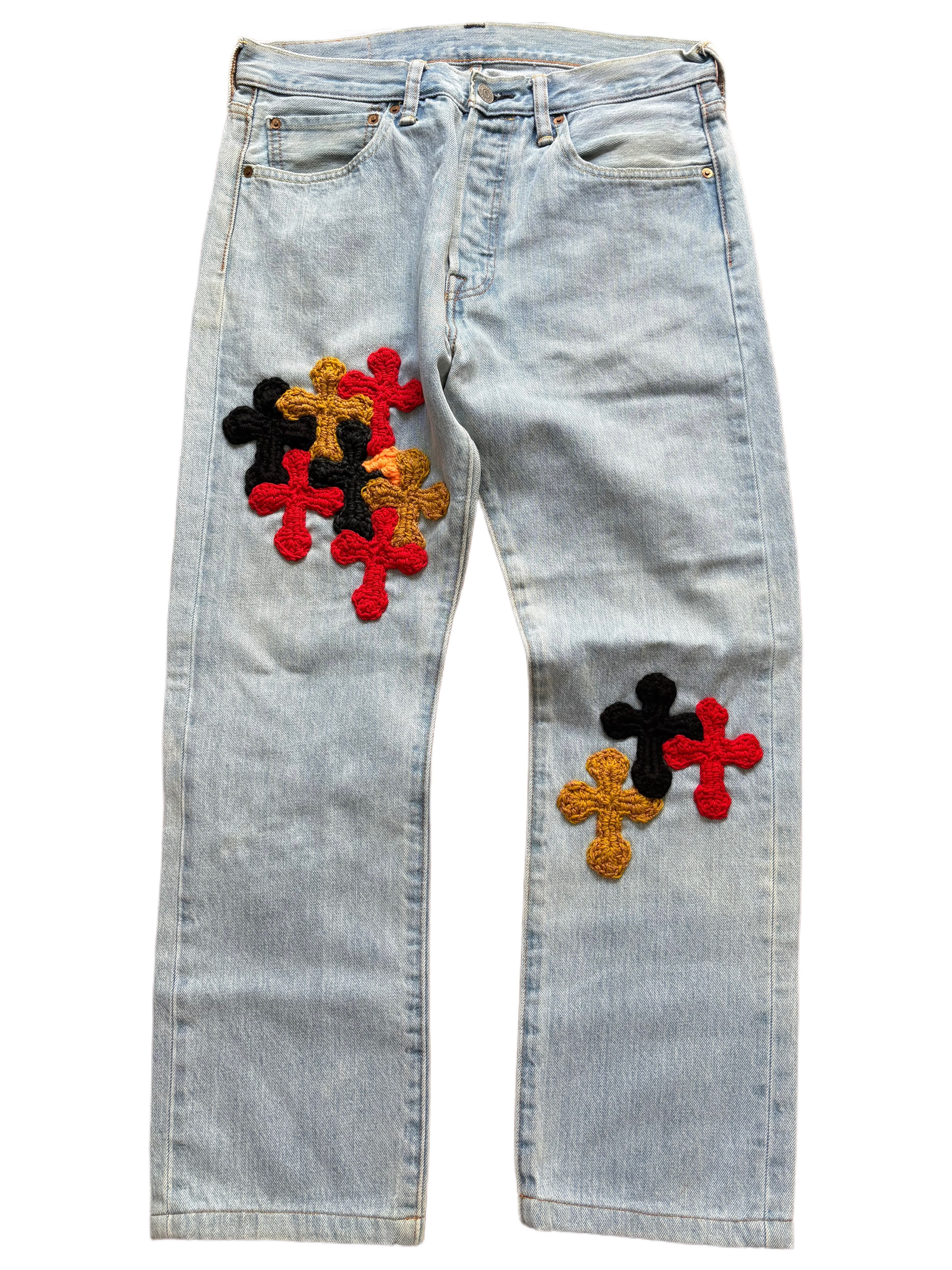 "Y.A.R.N." x Levi's 501 with 3D Cross (unisex) indigo