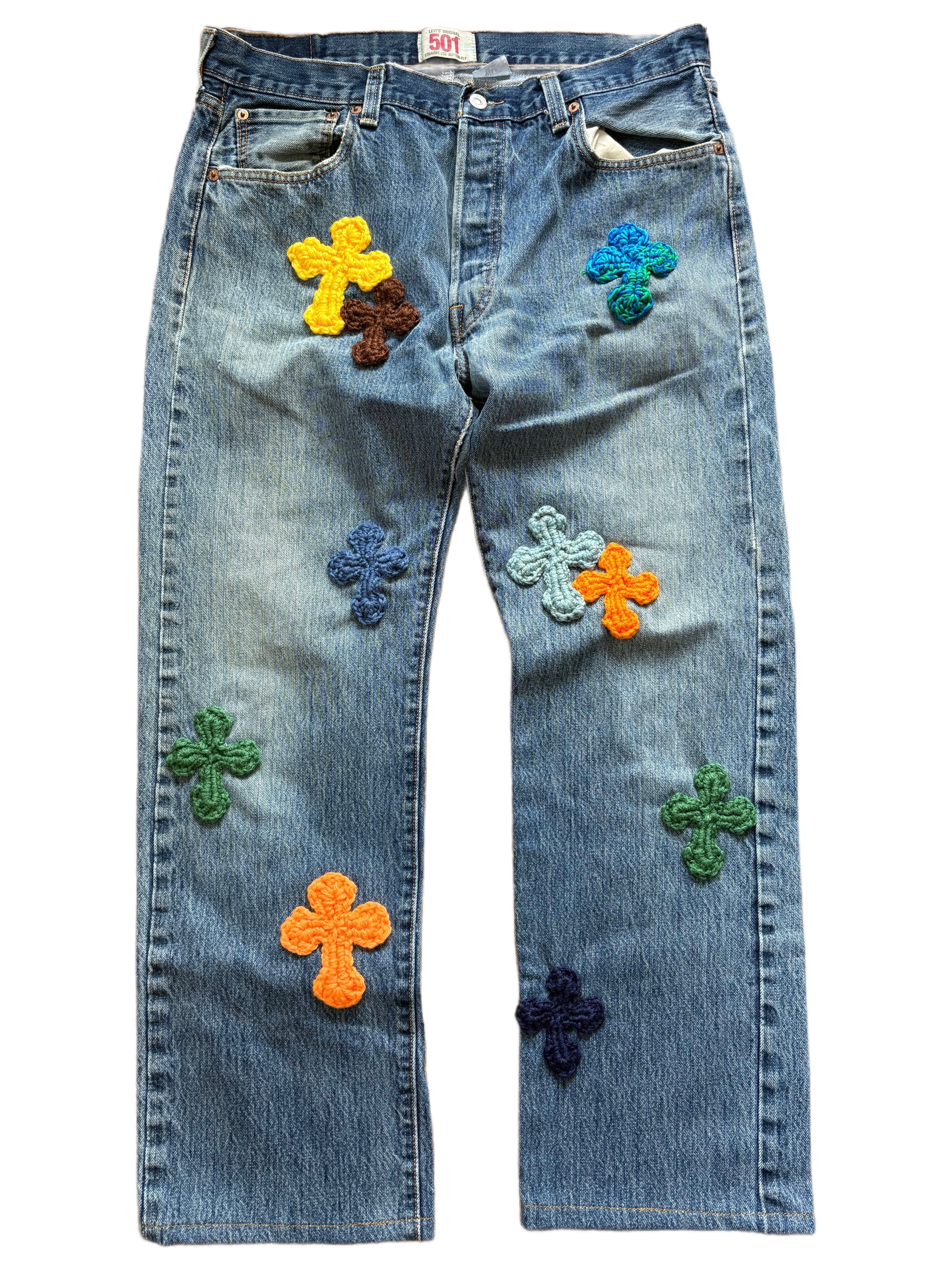 "Y.A.R.N." x Levi's 501 with 3D Cross (unisex) indigo