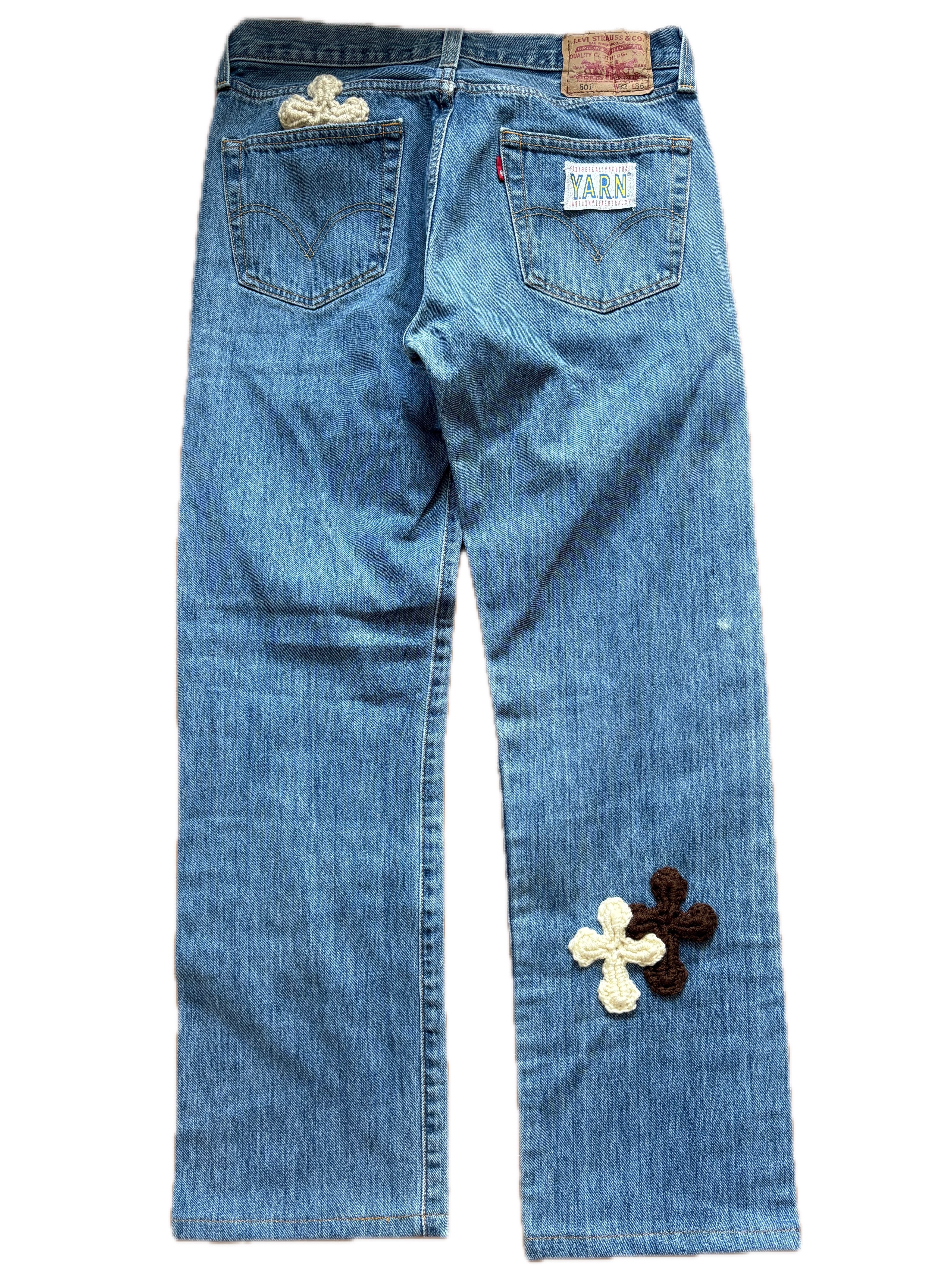 "Y.A.R.N." x Levi's 501 with 3D Cross (unisex) indigo
