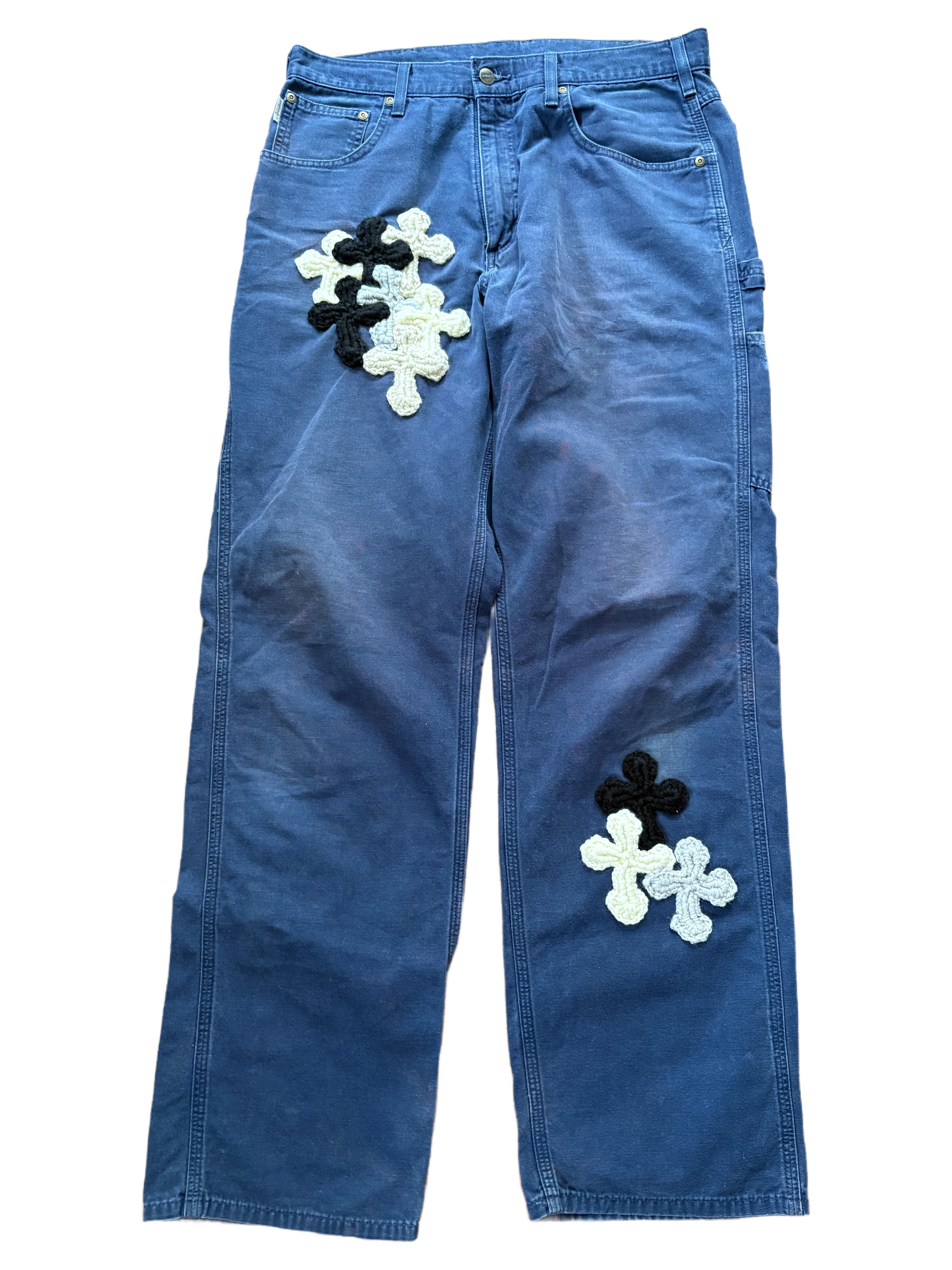 "Y.A.R.N." x Carhartt work pants with 3D Cross (unisex) indigo