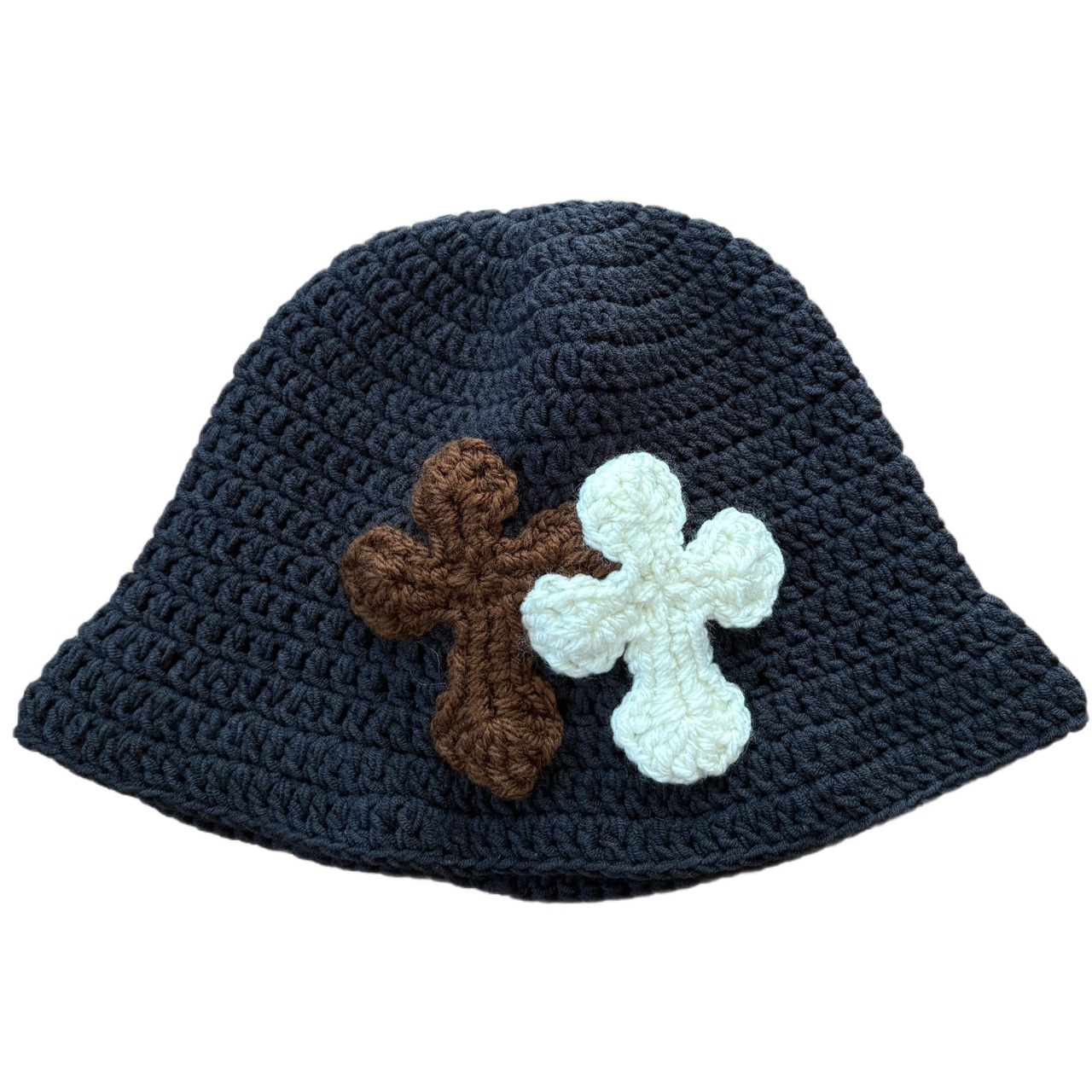 "Y.A.R.N. Collection" 3D double Cross Handmade Summer Knit hat (unisex) BLACK