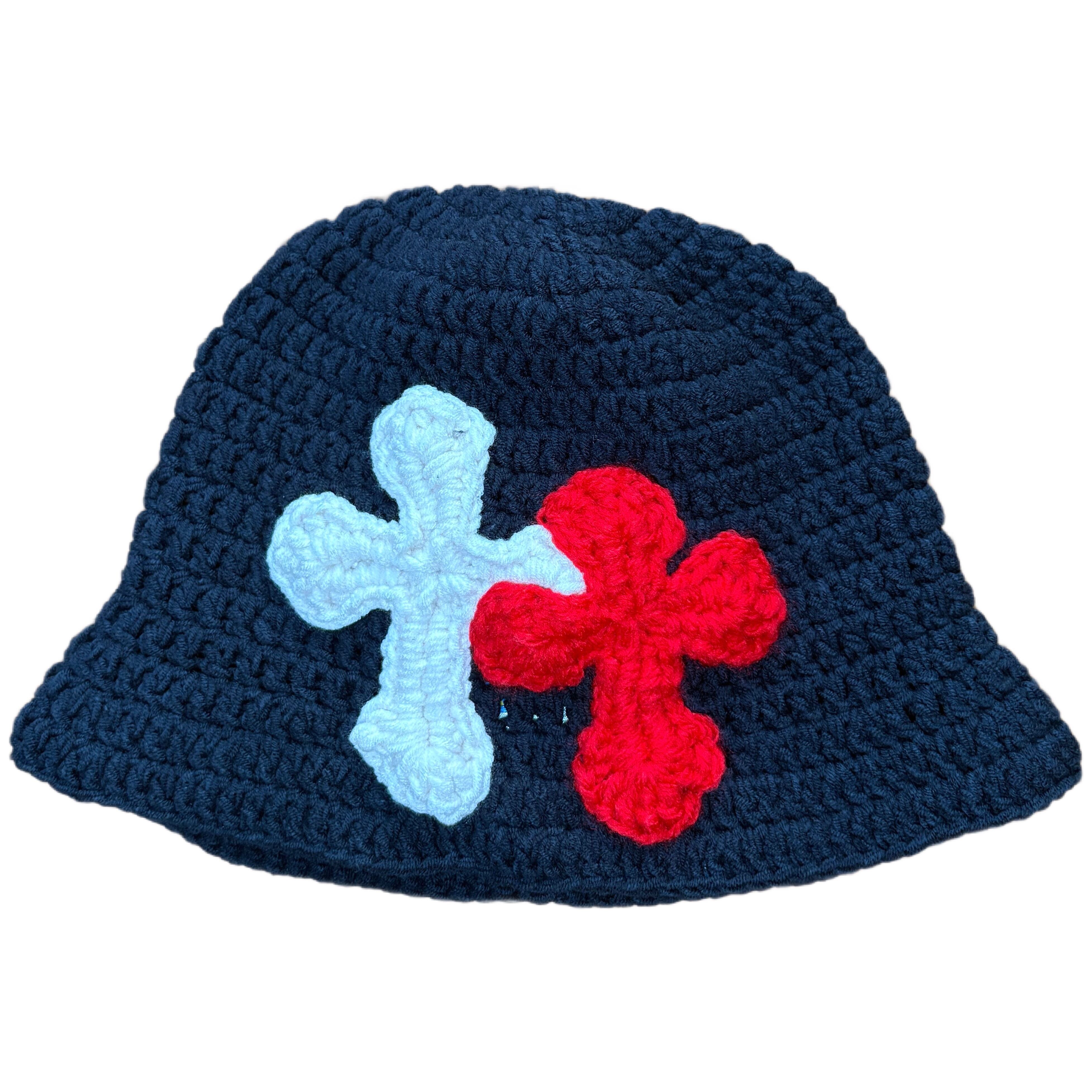 "Y.A.R.N. Collection" 3D double Cross Handmade Knit hat (unisex) BLACK