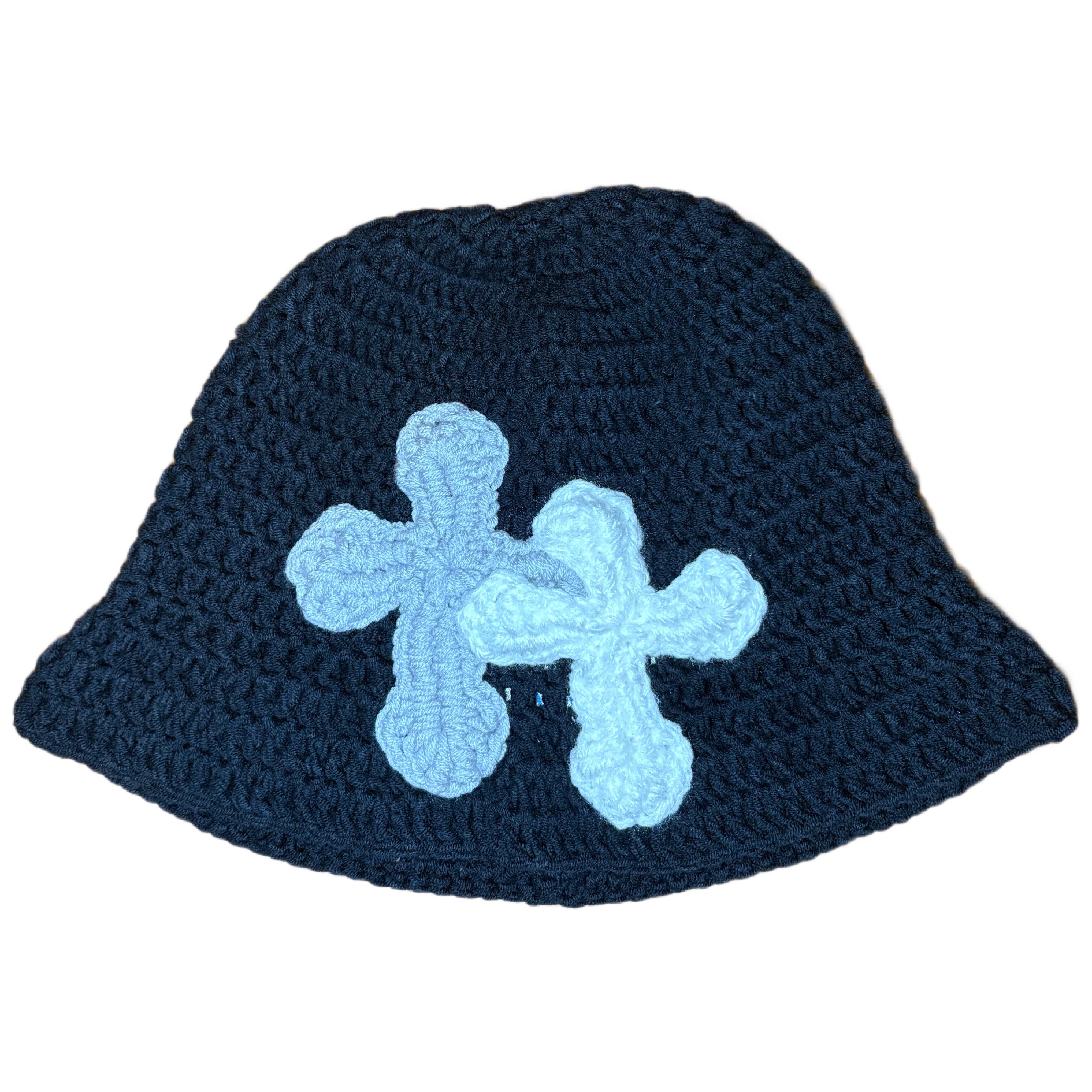 "Y.A.R.N. Collection" 3D double Cross Handmade Knit hat (unisex) BLACK