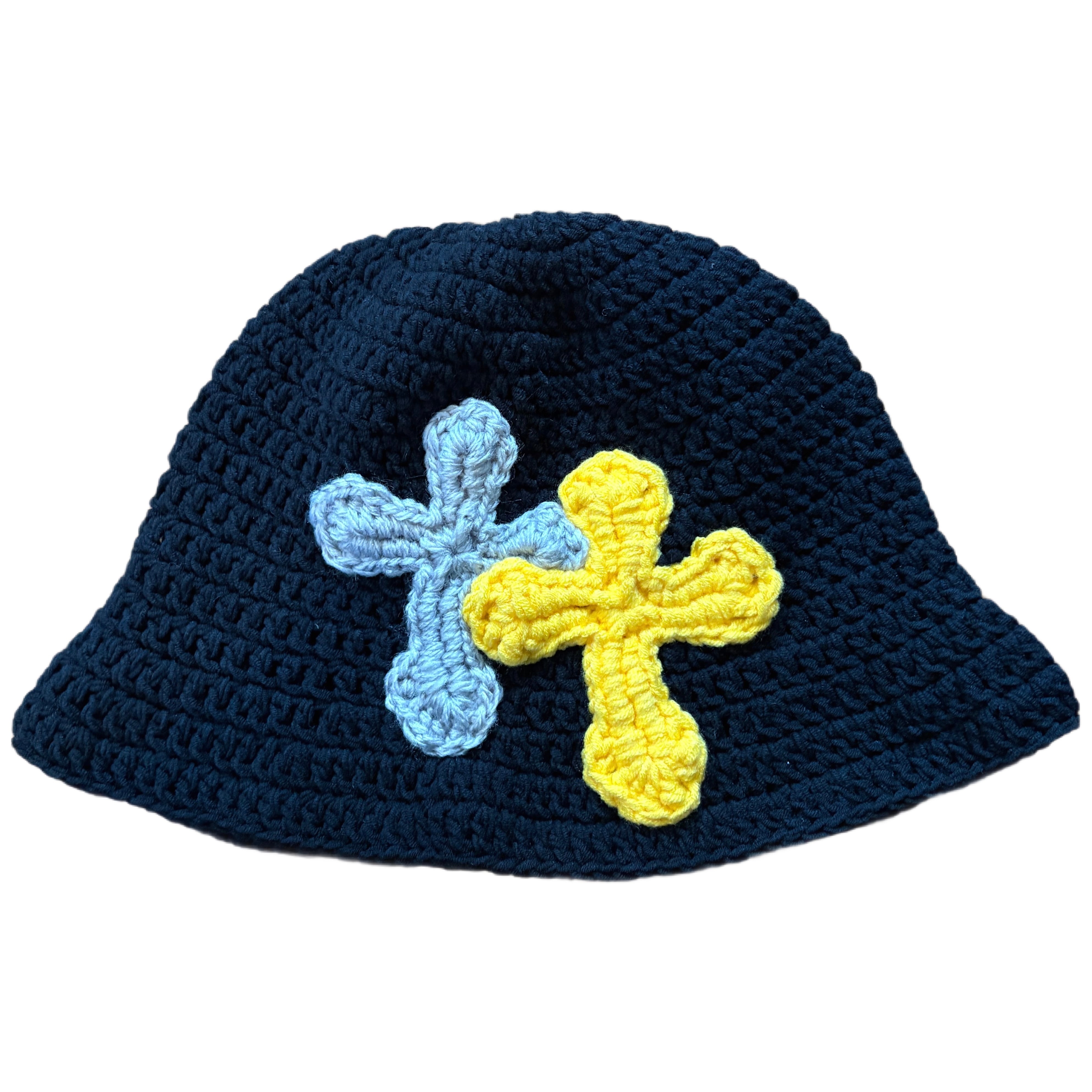 "Y.A.R.N. Collection" 3D double Cross Handmade Knit hat (unisex) BLACK