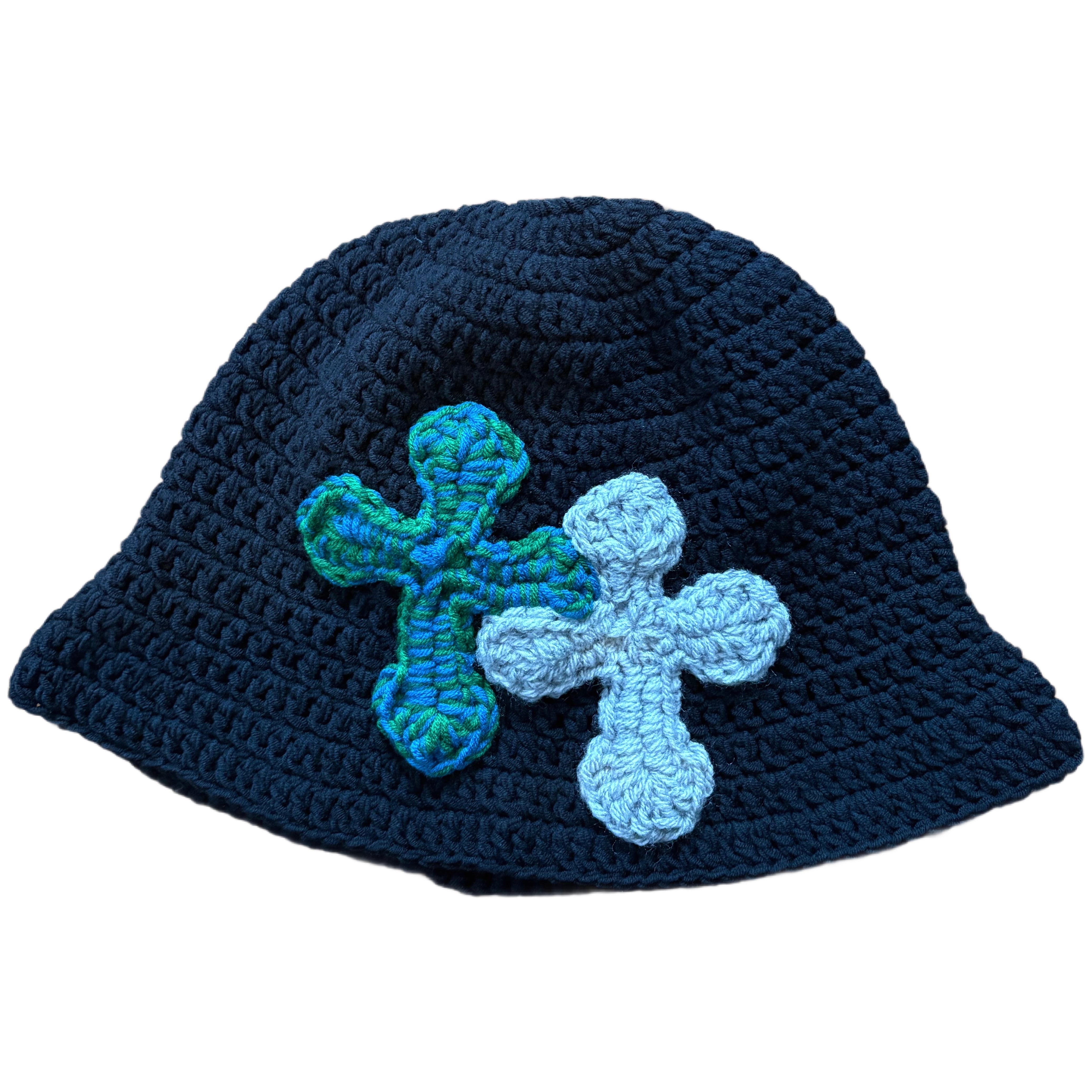 "Y.A.R.N. Collection" 3D double Cross Handmade Knit hat (unisex) BLACK