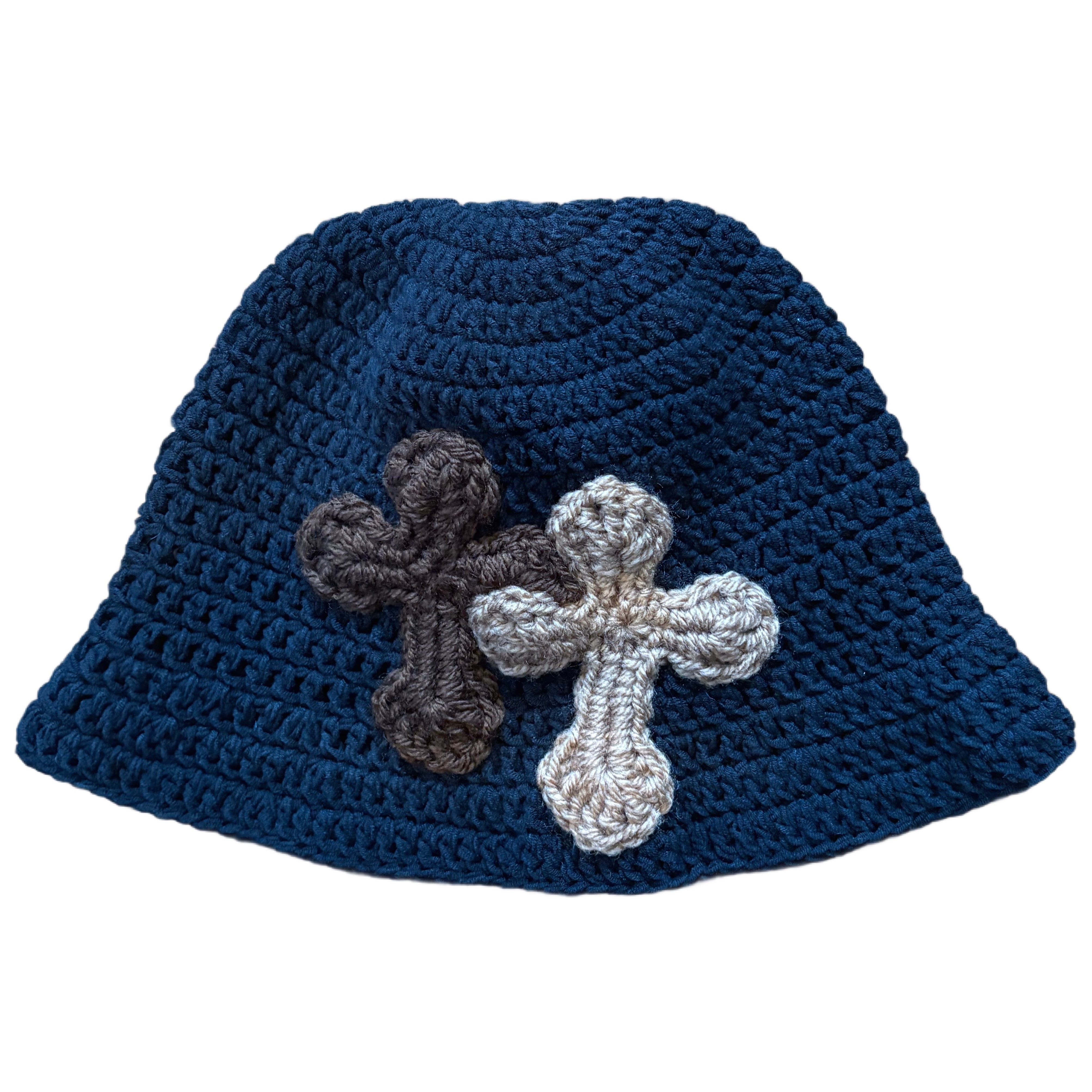 "Y.A.R.N. Collection" 3D double Cross Handmade Knit hat (unisex) BLACK