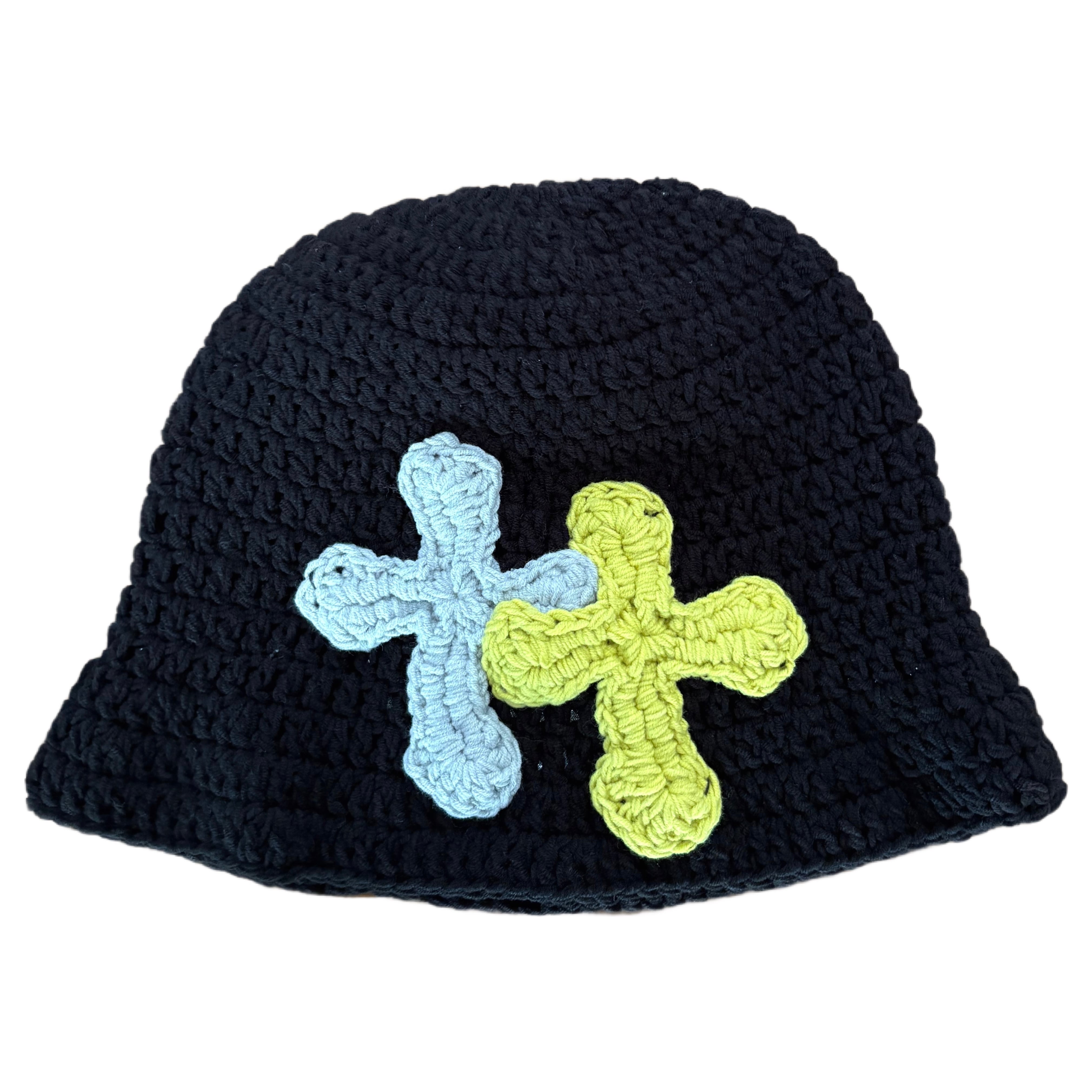 "Y.A.R.N. Collection" 3D double Cross Handmade Knit hat (unisex) BLACK