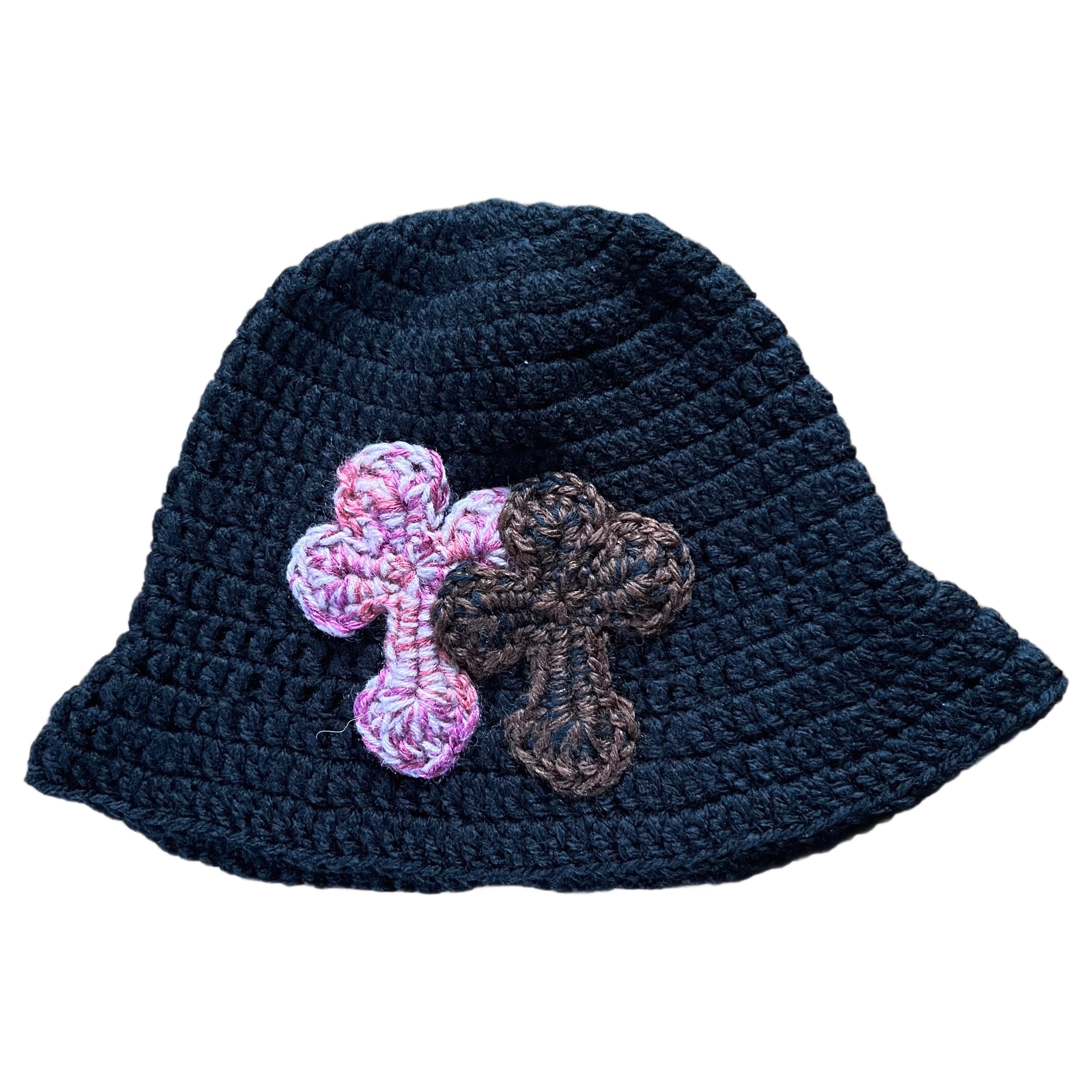 "Y.A.R.N. Collection" 3D double Cross Handmade Knit hat (unisex) black