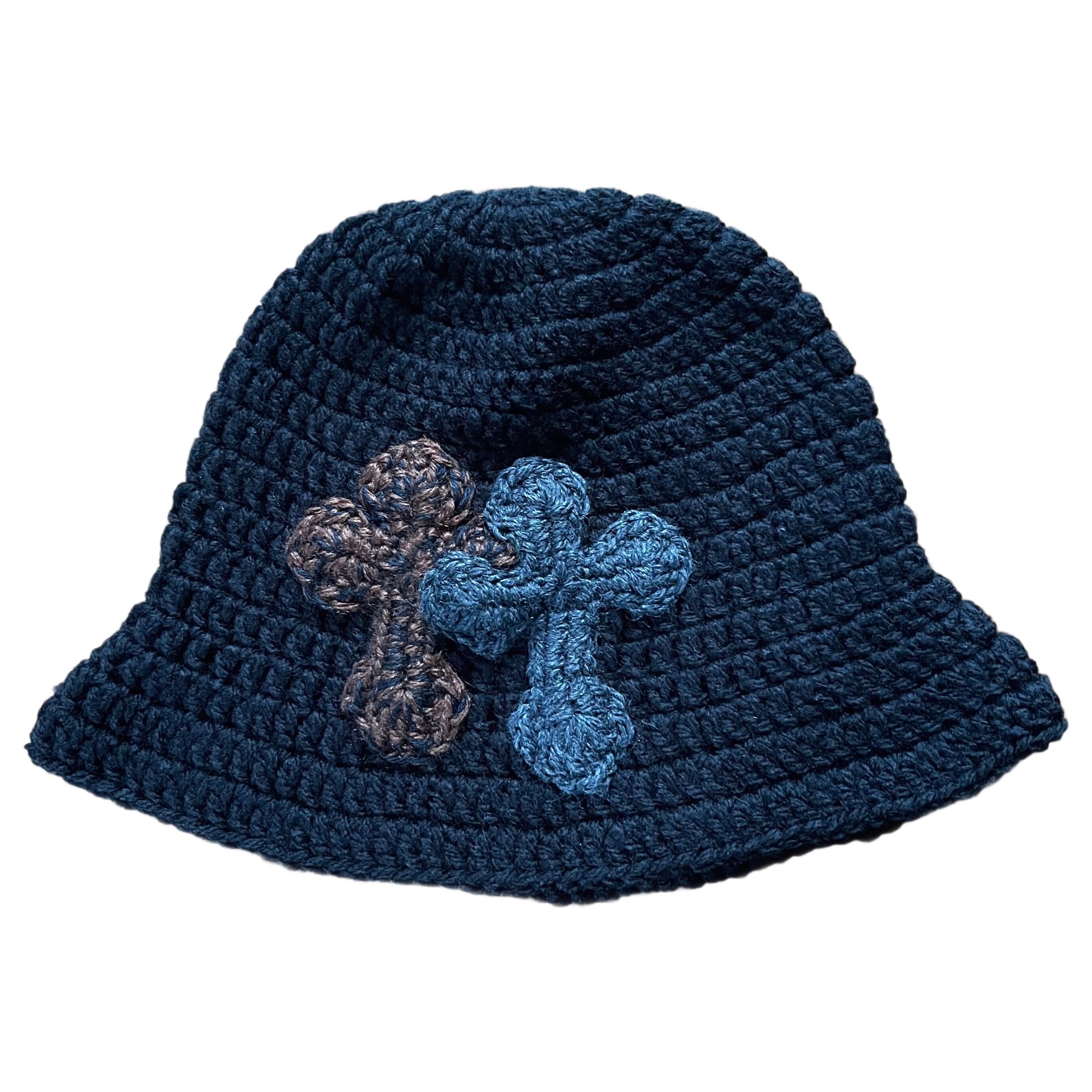 "Y.A.R.N. Collection" 3D double Cross Handmade Knit hat (unisex) black